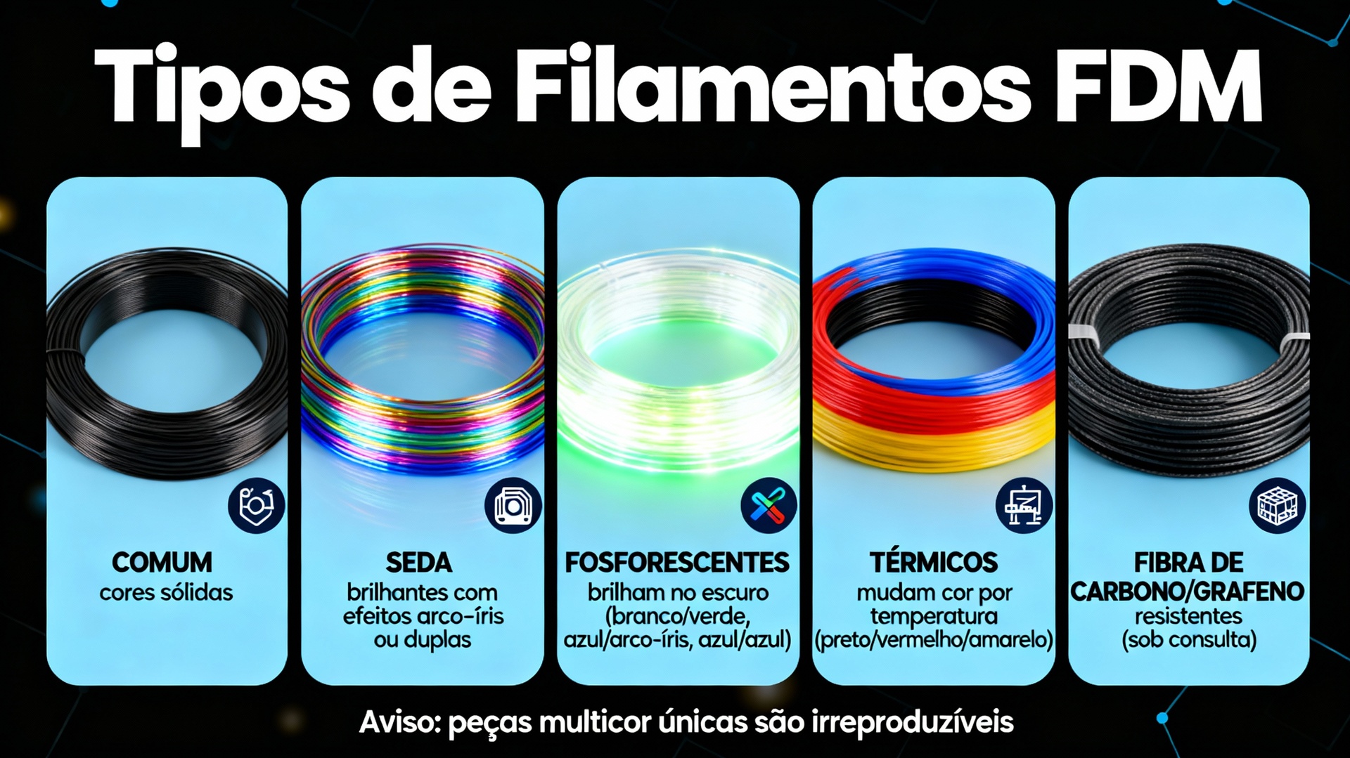 IMPORTANTE: Filamentos com acabamentos multicor (ex.: com efeito arco-íris, cores duplas, triplas, etc.) formam peças únicas, sendo impossível de se reproduzir novamente!